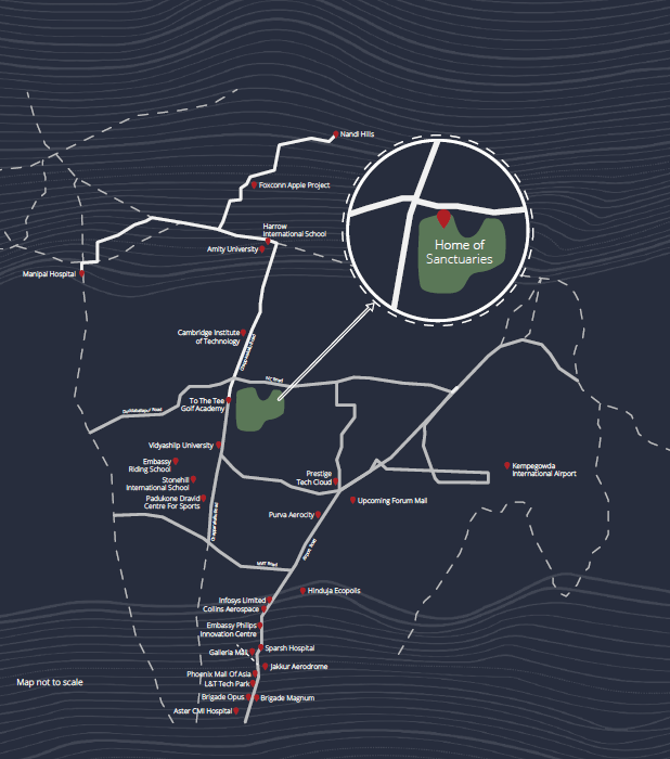 The location is right in the heart of East Bangalore. Several Reputed Schools, Hospitals & Major IT Parks are within 10 mins radius of the project.